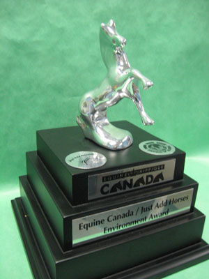 The Equine Canada/Just Add Horses Environment Award is presented annually to the individual/group who have been deemed most dedicated by their equine peers to have helped raise the environmental bar. This award is presented at Equine Canada’s annual conference.