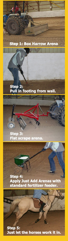 Applying "Just Add Arenas" is an easy process. Application is "Do It Yourself". No need to bring in outside contractors. No arena downtime. Let the horses help do the work for you.